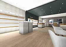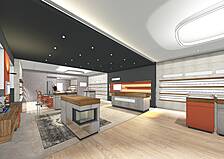 Das ausdrucksstarke Design des Optikerstudios passt perfekt zu den hochwertigen Brillen. Ruhige Beraterplätze und die zentrale Servicezone sorgen für eine entspannte und effiziente Beratung in einem einladenden Ambiente