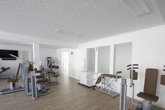 Beim Zutritt in das Physiotherapie Zentrum von Peter Schaal in Neusäß bei Augsburg beginnt das Training mit einem Lächeln. Der freundlich gestaltete Eingangsbereich lässt einen vergessen, dass es hier um Gesundheitstraining geht.